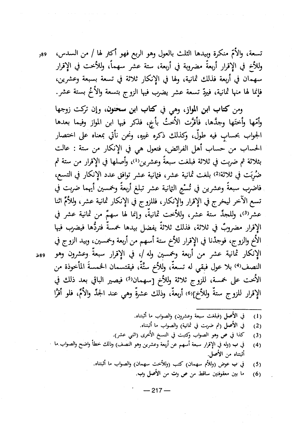 (¬5) في ب عوض (وللأم سهمان) كتب (وللأخت سهملن) والصواب ما أثبتناه.
