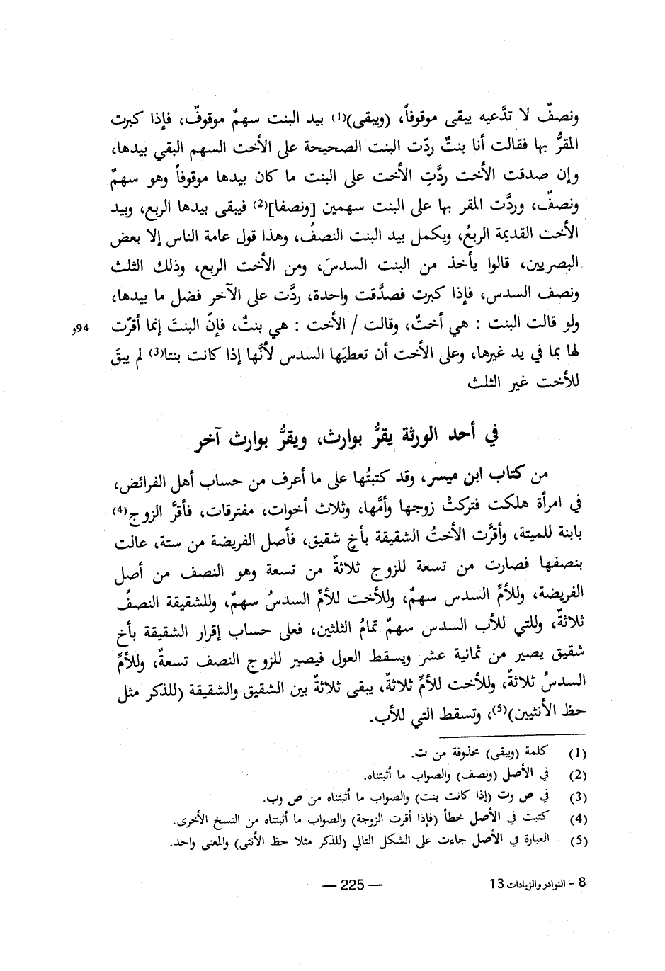 (¬5) العبارة في الأصل جاءت على الشكل التالي (للذكر مثل حظ الأنثى) والمعنى واحد.