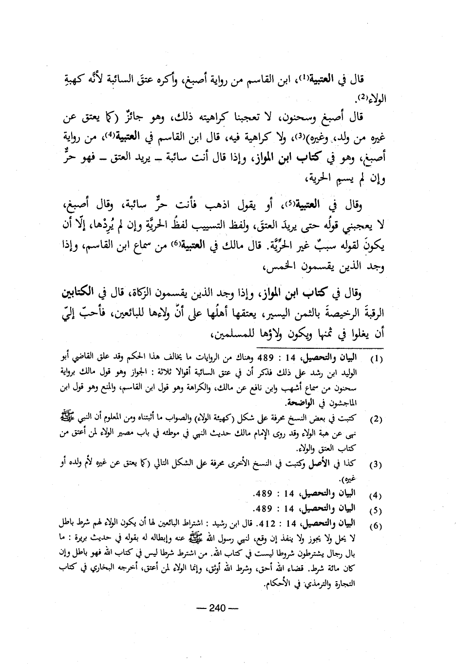 (¬4) البيان والتحصيل، 14: 489.