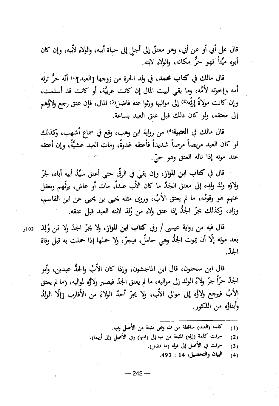 (¬4) البيان والتحصيل، 14: 493.