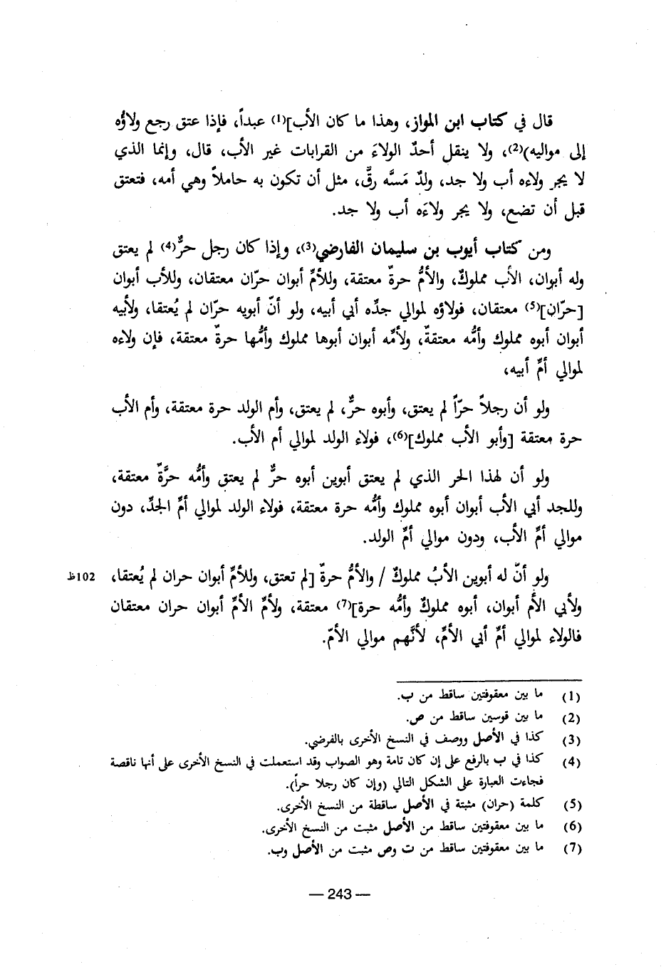 (¬4) كذا في ب بالرفع على إن كان تامه وهوالصواب وقد استعملت في النسخ الأخرى على أنها ناقصة فجاءت العبارة على الشكل التالي (وإن كان رجلا حراً).