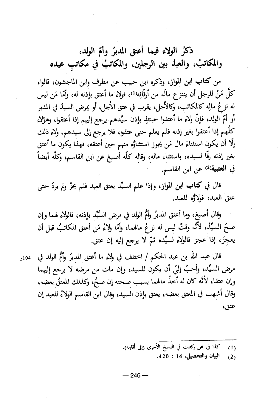(¬2) البيان والتحصيل، 14: 420.