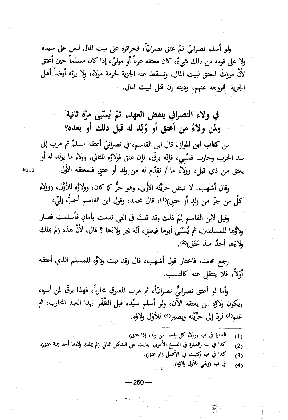 (¬2) كذا في ب والعبارة في النسخ الأخرى جاءت على الشكل التالي (لم يملك ولاءها أحد بمنة عتق).