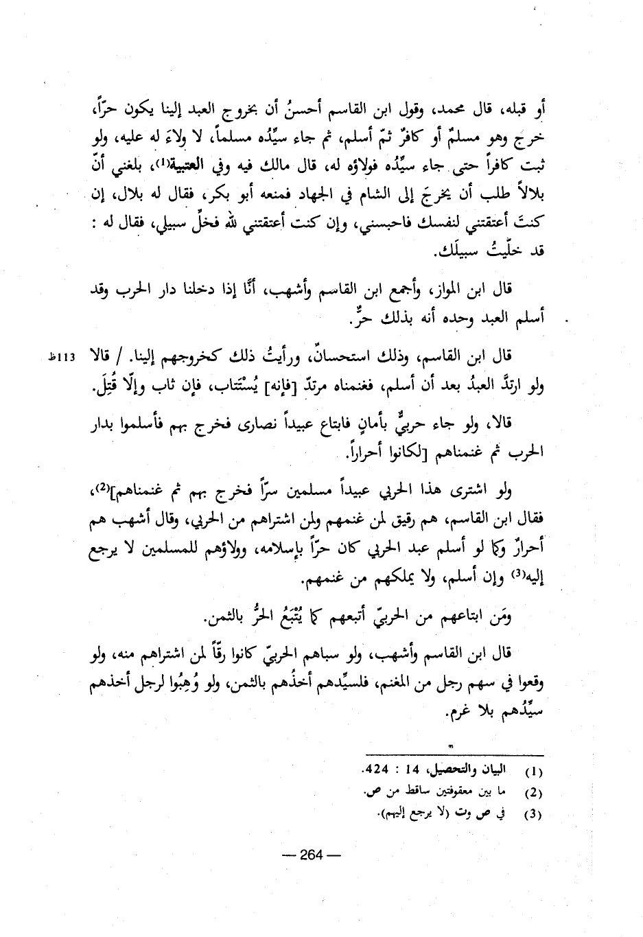 قال ابن القاسم، وذلك استحسان، ورأيت ذلك كخروجهم إلينا./ قالا ولو ارتد العبد بعد أن أسلم، فغنمناه مرتد [فإنه] يستتاب، فإن ثاب وإلا قتل.