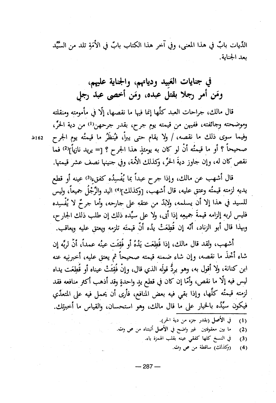 الديات باب في المعنى، وفي آخر هذا الكتاب باب في الأمة تلد من السيد بعد الجناية.