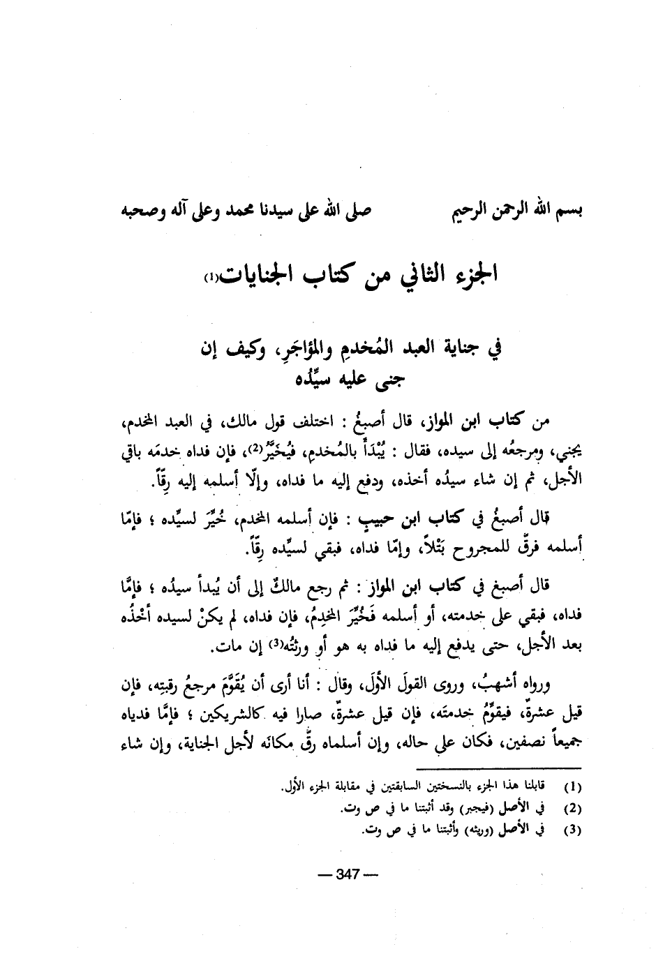 من كتاب ابن المواز، قال أصبغ: اختلف قول مالك، في العبد المخدم، يجني، ومرجعه إلى سيده، فقال: يبدأ بالمخدم، فيخير (¬2)، فإن فداه خدمه باقي الجل، ثم أن شاء سيده أخذه، ودفع إليه ما فداه، وإلا أسلمه إليه رقاً.
