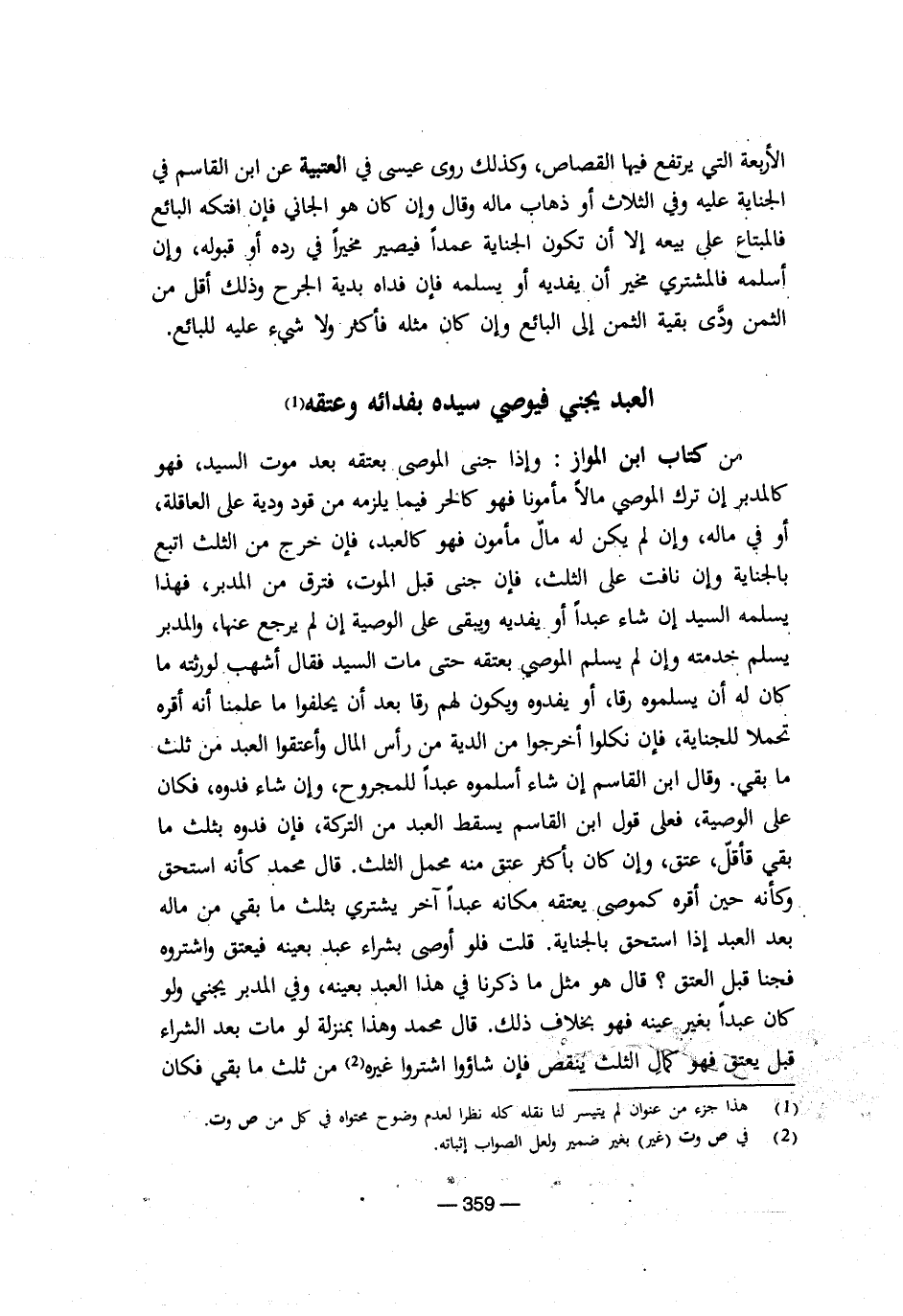 العبد يجني فيوصي سيده بفدائه وعتقه (¬1)