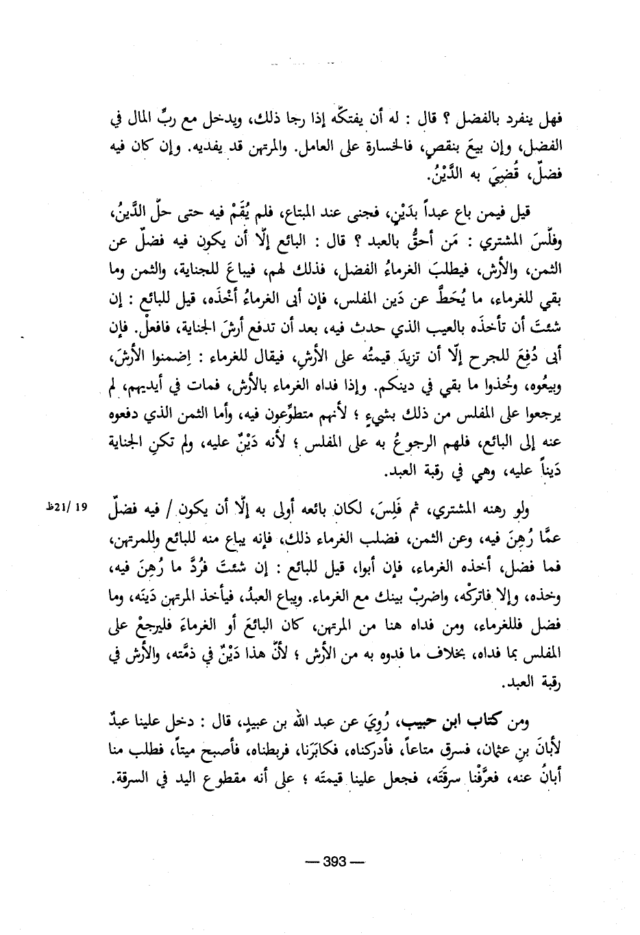 فهل ينفرد بالفضل؟ قال: له أن يفتكه إذا رجا ذلك، ويدخل مع رب المال في الفضل، وإن بيع بنقص، فالخسارة على العامل. والمرتهن قد يفديه. وإن كان فيه فضل، قضي به الدين.
