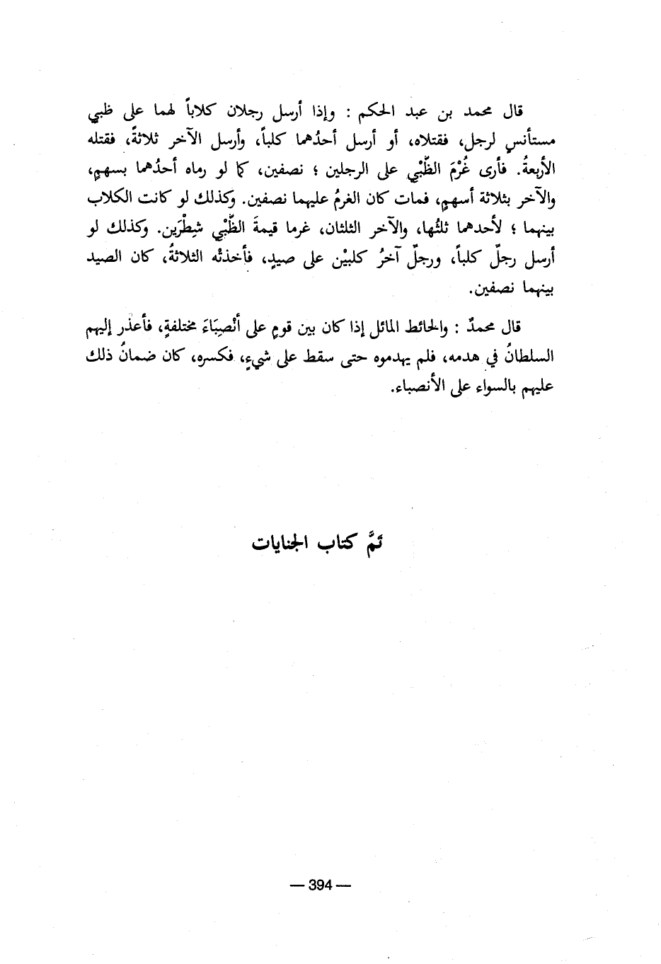 قال محمد: والحائط المائل إذا كان بين قوم على أنصباء مختلفة، فأعذر إليهم السلطان في هدمه، فلم يهدموه حتى سقط على شيء، فكسره، كان ضمان ذلك عليهم بالسواء على الأنصباء.
