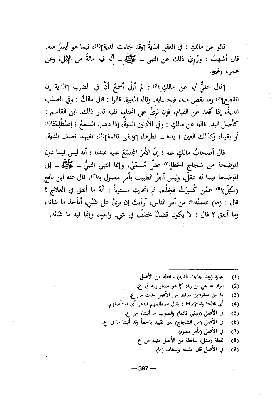 قال أصحاب مالك عنه: إن الأمر المجتمع عليه عندنا؛ أنه ليس فيما دون الموضحة من شجاج الخطإ (¬6) عقل مسمى، وإنما انتهى النبي- صلى الله عليه وسلم- إلى الموضحة فيما له عقل، وليس أجر الطبيب بأمر معمول به (¬7) قال عنه ابن نافع (سئل) (¬8) عمن كسرت فخذه، ثم انجبرت مستوية: أله ما أنفق في العلاج؟ قال: (ما) علمته (¬9) من أمر الناس، أرأيت إن برئ على شين، أيأخذ ما شأنه. وما أنفق؟ قال: لا يكون قضاء مختلف في شيء واحد، وإنما فيه ما شأنه.