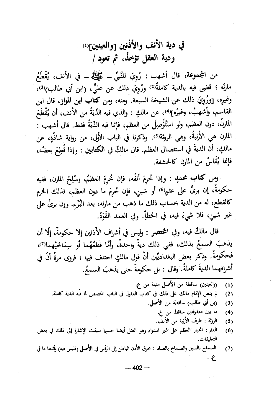 (¬2) لم ينص الإمام مالك على ذلك في كتاب العقول في الباب المخصص لما فيه الدية كاملة.