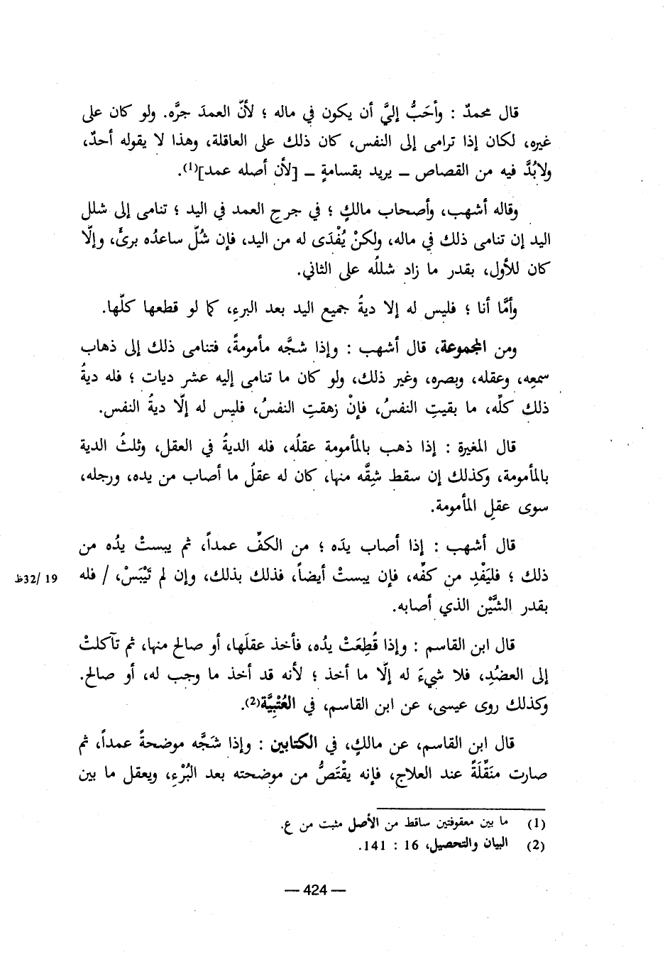 (¬2) البيان والتحصيل، 16: 141.