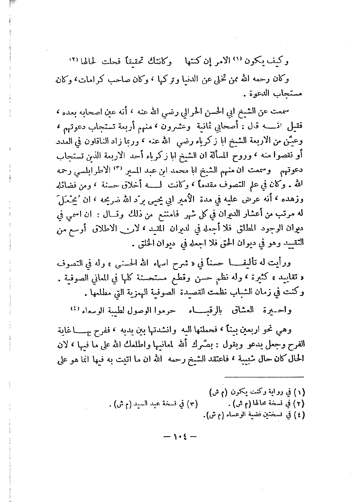 ورأيت له تأليفا حسنا في "شرح أسماء الله الحسنى" وله في التصوف "تقاييد" كثيرة، وله نظم حسن وقطع مستحسنة كلها في المعاني الصوفية. وكنت في زمان الشباب نظمت القصيدة الصوفية الهمزية التي مطلعها.