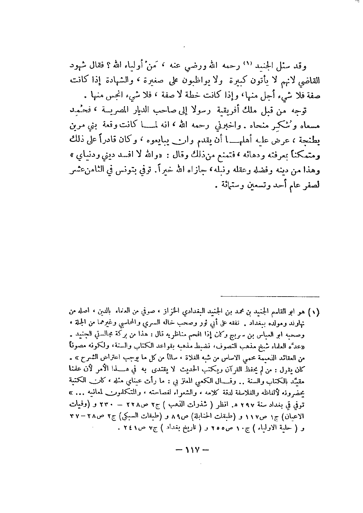 وقد سئل الجنيد رحمه الله ورضي عنه، من أولياء الله؟ فقال شهود القاضي لأنهم لا يأتون كبيرة ولا يواظبون على صغيرة، والشهادة إذا كانت صفة فلا شيء أجل منها، وإذا كانت خطة لا صفة، فلا شيء أنجس منها.