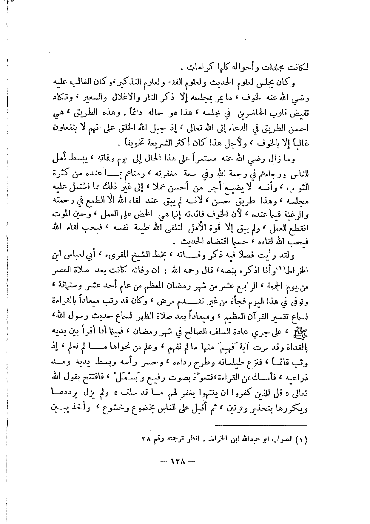 وما زال رضي الله عنه مستمرا على هذا الحال إلى يوم وفاته، يبسط أمل الناس ورجاءهم في رحمة الله وفي سعة مغفرته، ومناهم بما عنده من كثرة الثواب، وإنه لا يضيع أجر من أحسن عملا، إلى غير ذلك مما اشتمل عليه مجلسه، وهذا طريق حسن، لأنه لم يبق عند لقاء الله إلا الطمع في رحمته والرغبة فيما عنده، لأن الخوف فائدته إنما هي الحض على العمل، وحين الموت انقطع العمل، ولم يبق إلا قوة الأمل لتلقى الله طيبة نفسه، فيحب لقاء الله فيحب الله لقاءه، حسبما اقتضاه الحديث.