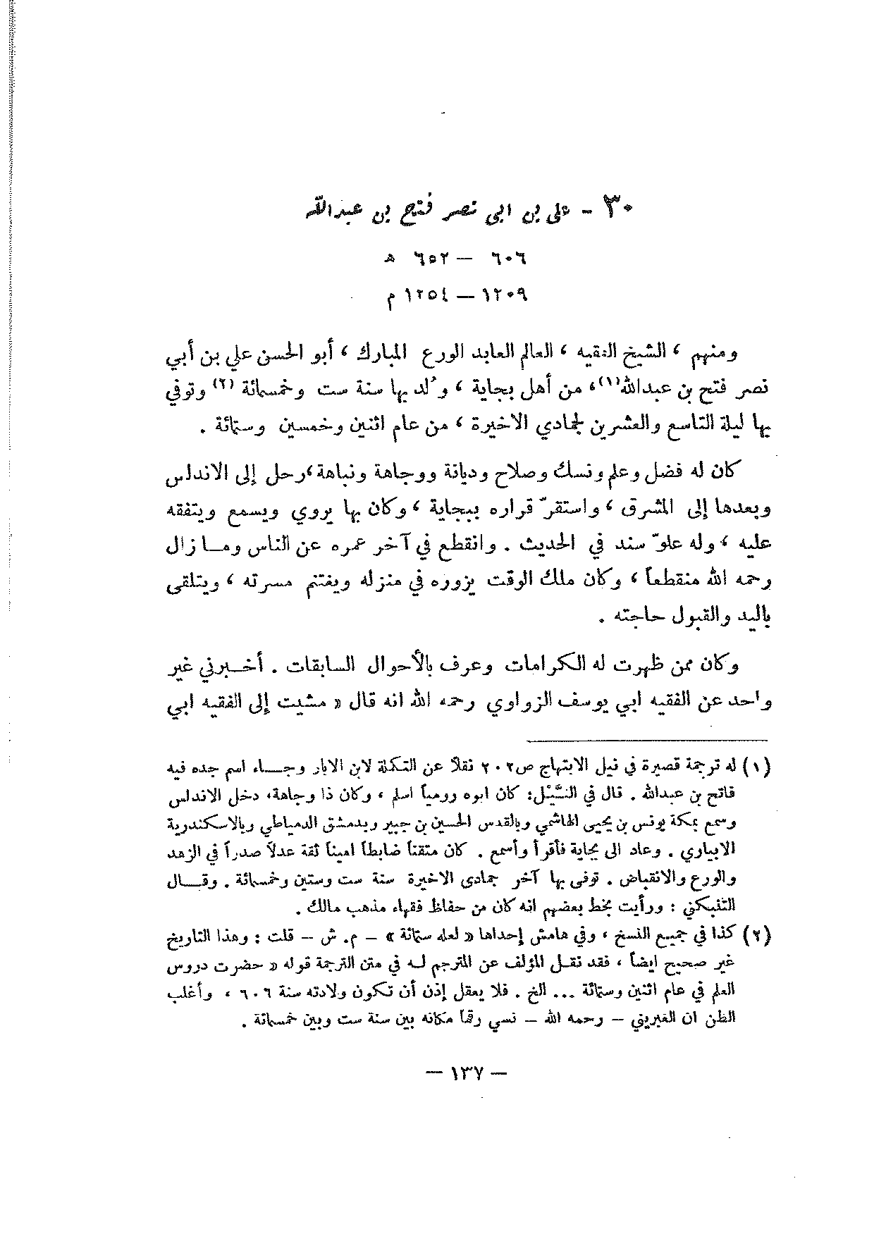 ومنهم، الشيخ الفقيه، العالم العابد الورع المبارك، أبو الحسن علي بن أبي نصر فتح بن عبد الله، من أهل بجاية، ولد بها سنة ست وخمسمائة وتوفي بها ليلة التاسع والعشرين لجمادى الأخيرة، من عام اثنين وخمسين وستمائة.