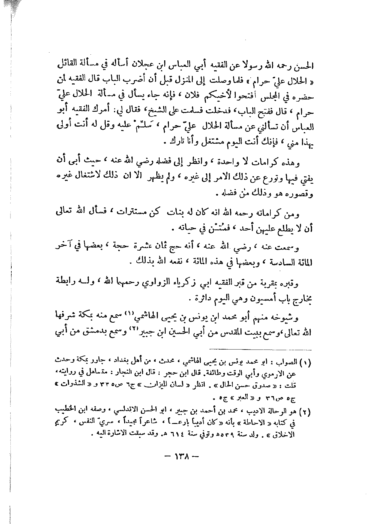 وهذه كرامات لا واحدة، وانظر إلى فضله رضي الله عنه، حيث أبي أن يفتي فيها وتورع عن ذلك الأمر إلى غيره، ولم يظهر إلا أن ذلك لاشتغال غيره وقصوره هو وذلك من فضله.