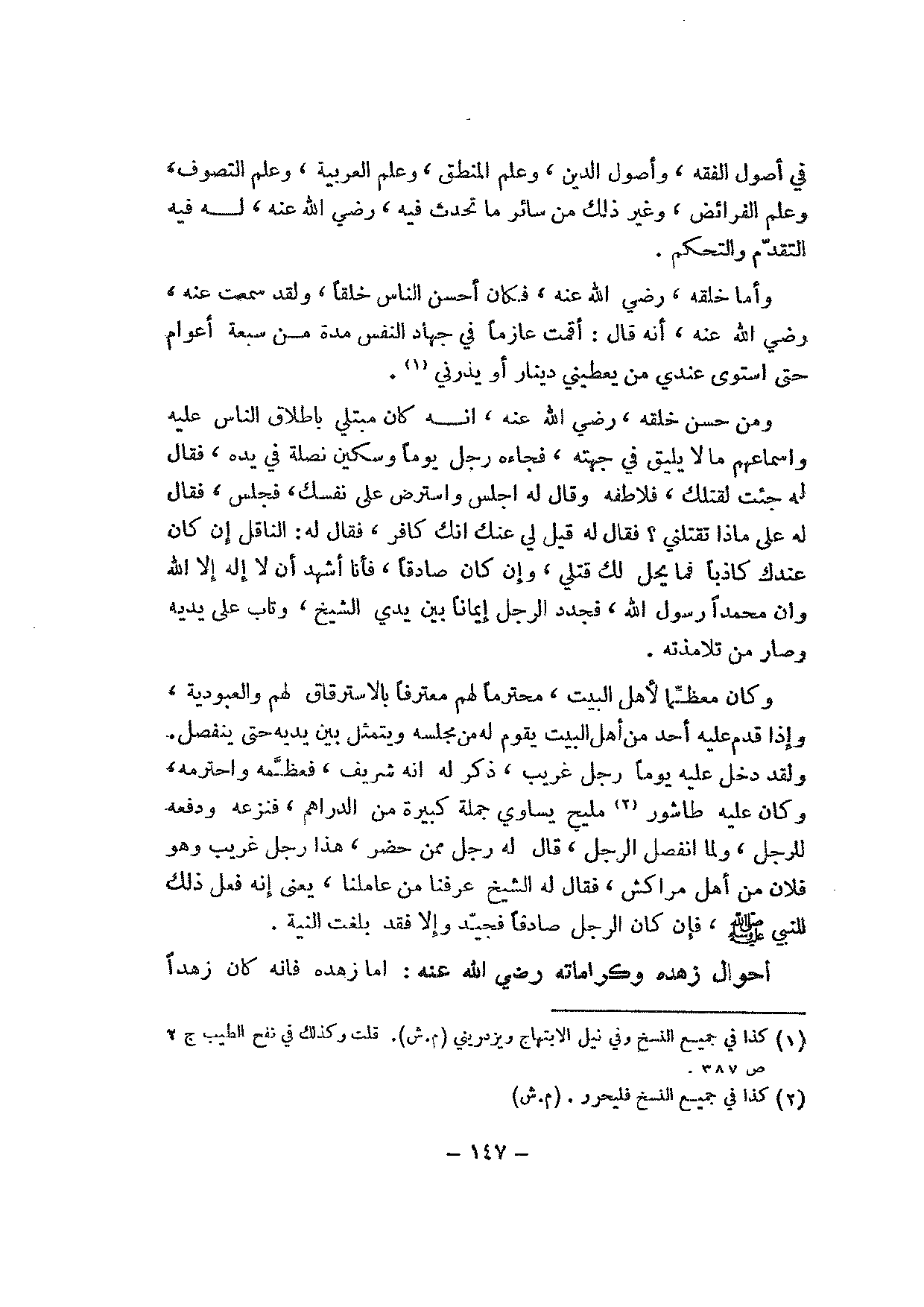 ـ[أحوال زهده وكراماته رضي الله عنه]ـ: أما زهده فإنه كان زهدا