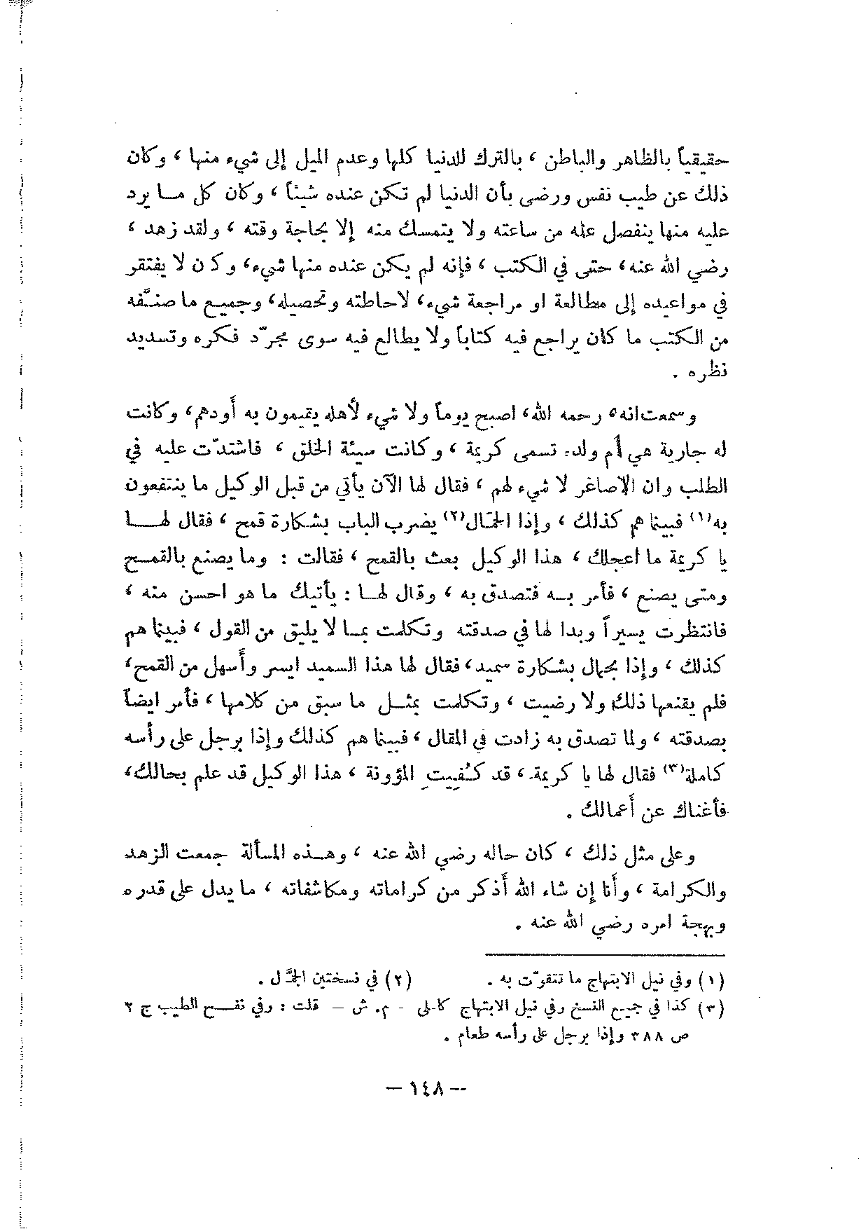 وعلى مثل ذلك، كان حاله رضي الله عنه، وهذه المسألة جمعت الزهد والكرامة، وأنا أن شاء الله أذكر من كراماته ومكاشفاته، ما يدل على قدره وبهجة أمره رضي الله عنه.