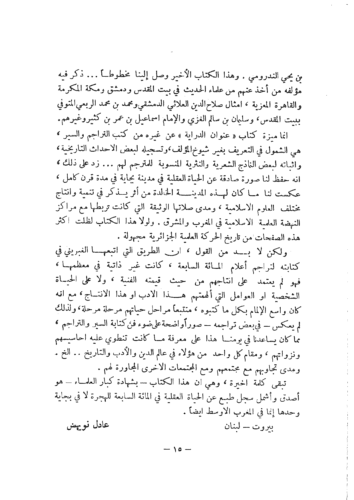 تبقى كلمة أخيرة، وهي أن هذا الكتاب- بشادة كبار العلماء- هو أصدق وأشمل سجل طبع عن الحياة العقلية في المائة السابعة للهجرة لا في بجاية وحدها إنما في المغرب الأوسط أيضا.