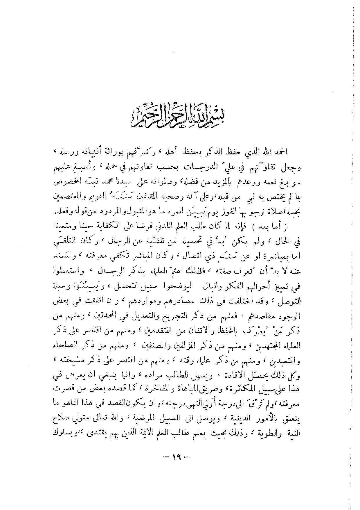 الحمد لله الذي حفظ الذكر بحفظ أهله، وشرفهم بوراثة أنبيائه ورسله، وجعل تفاوتهم في علي الدرجات بحسب تفاوتهم في حمله، وأسبغ عليهم سوابغ نعمه ووعدهم بالمزيد من فضله، وصلواته على سيدنا محمد نبيه المخصوص بما لم يختص به نبي من قبله، وعلى آله وصحبه المقتفين سننه القويم والمعتصمين بحبله، صلاة نرجو بها الفوز يوم يبين للمرء ما هو المقبول والمردود من قوله وفعله.