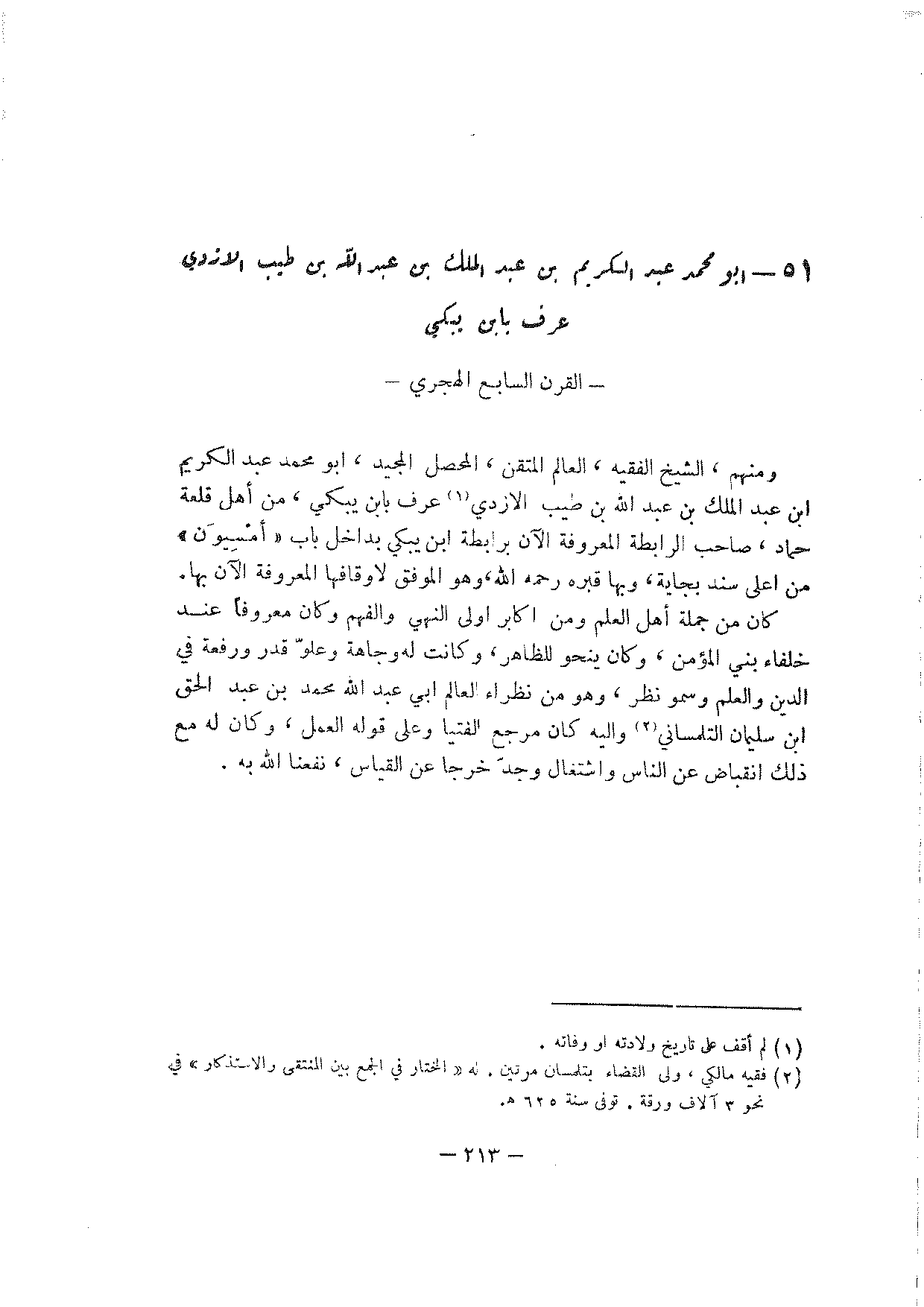 51 - أبو بكر عبد الكريم بن عبد الملك بن عبد الله بن طيب الازدي عرف بابن يبكي