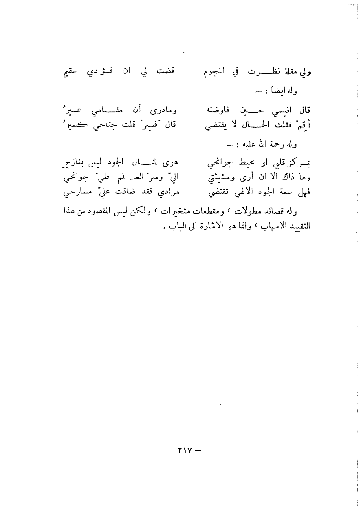 وما ذاك إلا أن أرى ومشيئتي … إلي وسر العلم طي جوانحي