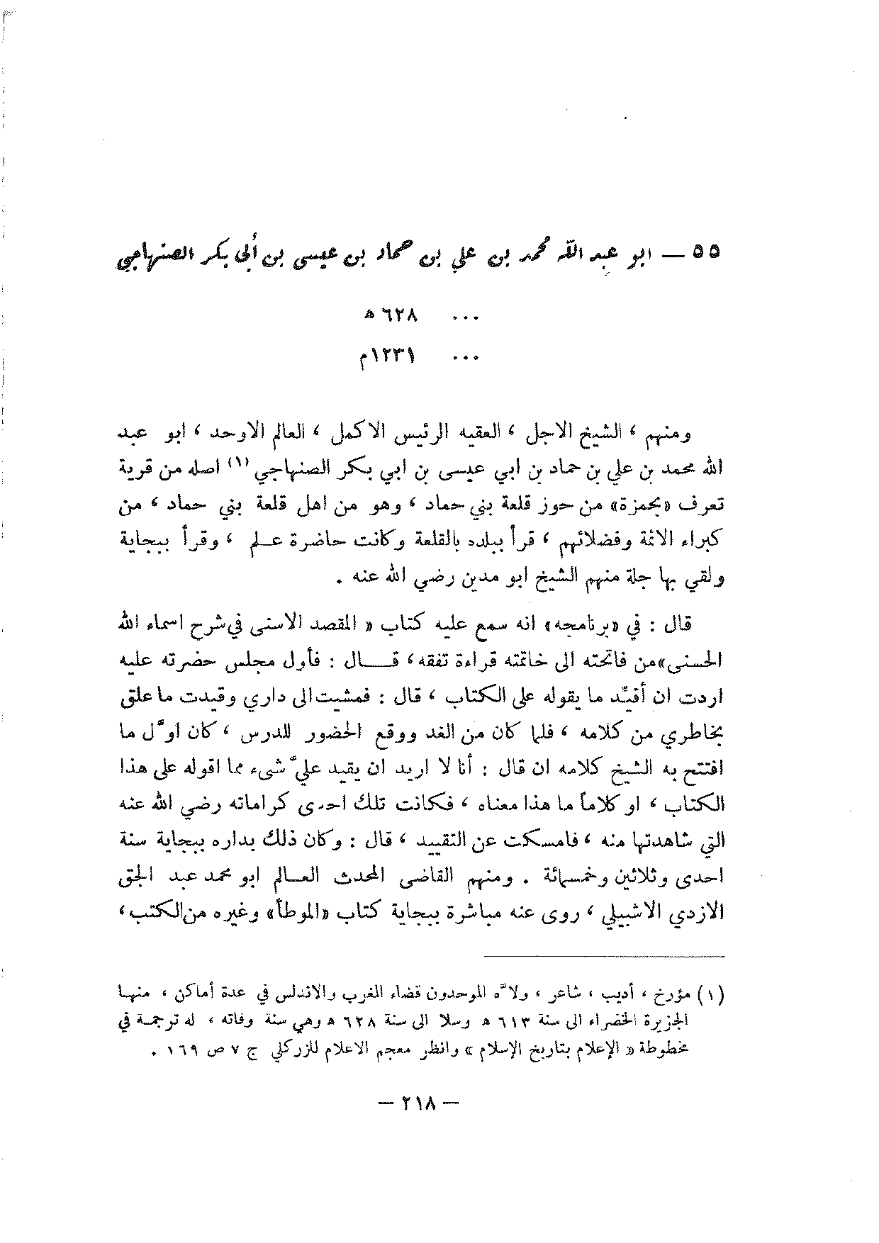 55 - أبو عبد الله محمد بن علي بن حماد بن عيسى بن أبي بكر الصنهاجي