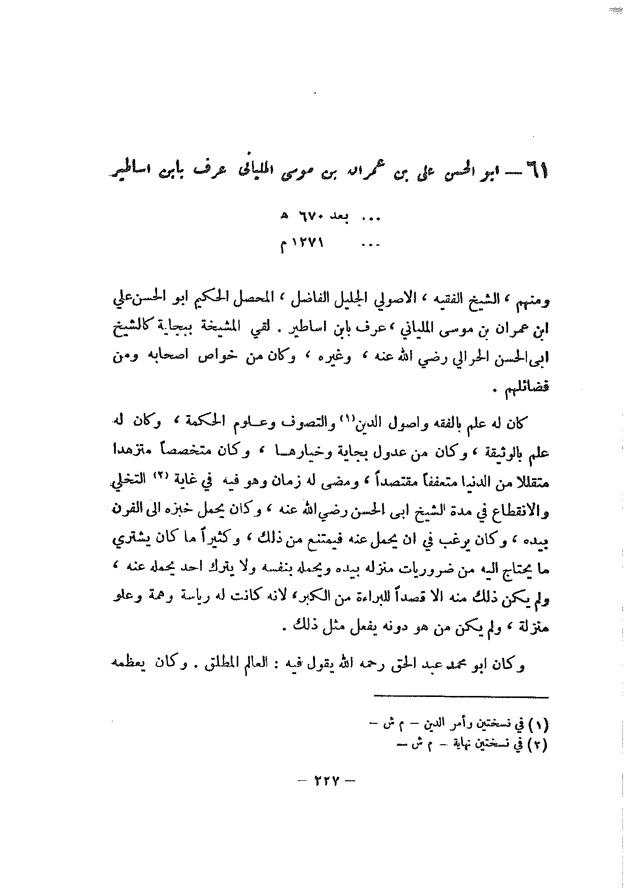 61 - أبو الحسن علي بن عمران بن موسى الملياني عرف بابن أساطير