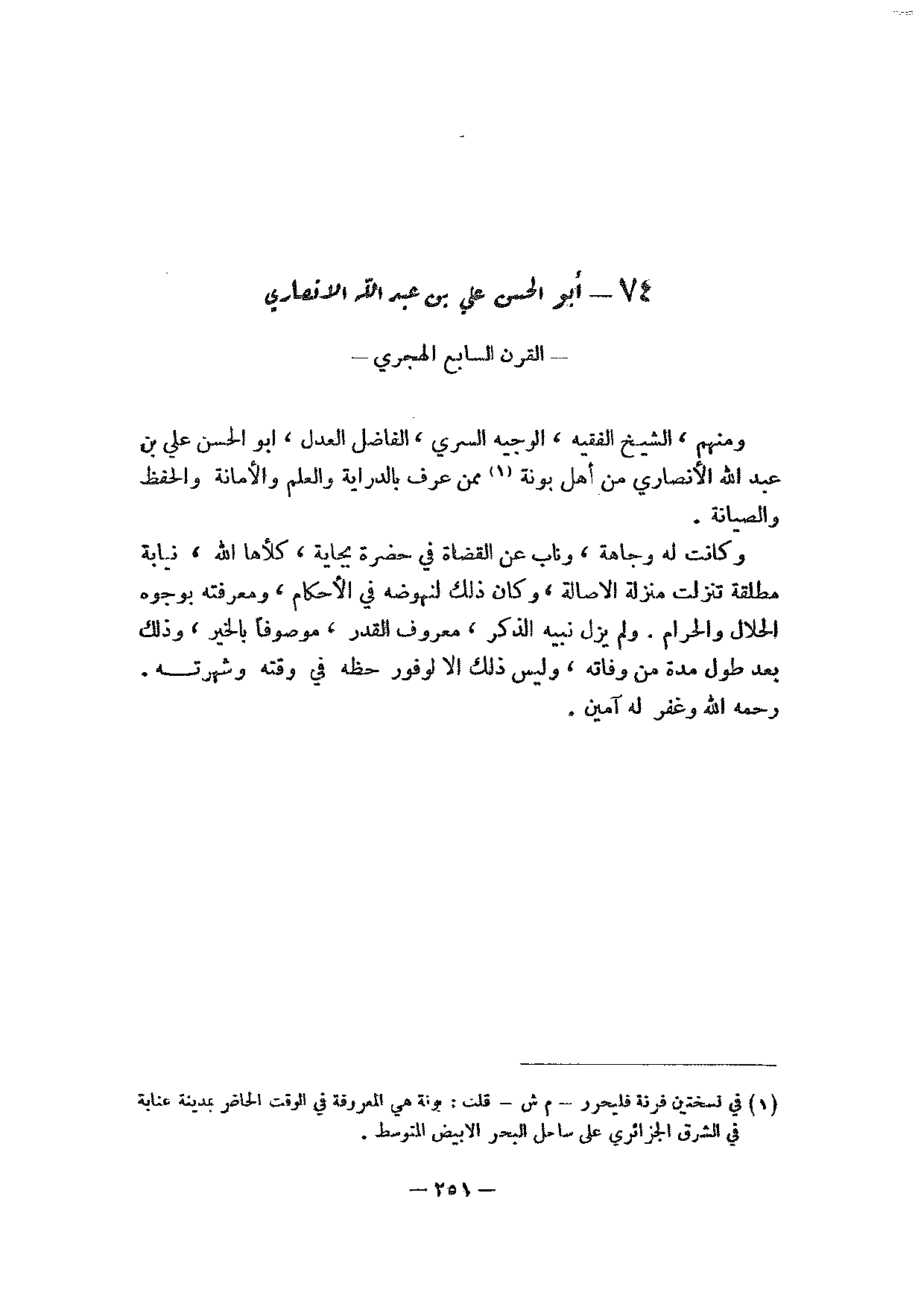 74 - أبو الحسن علي بن عبد الله الأنصاري