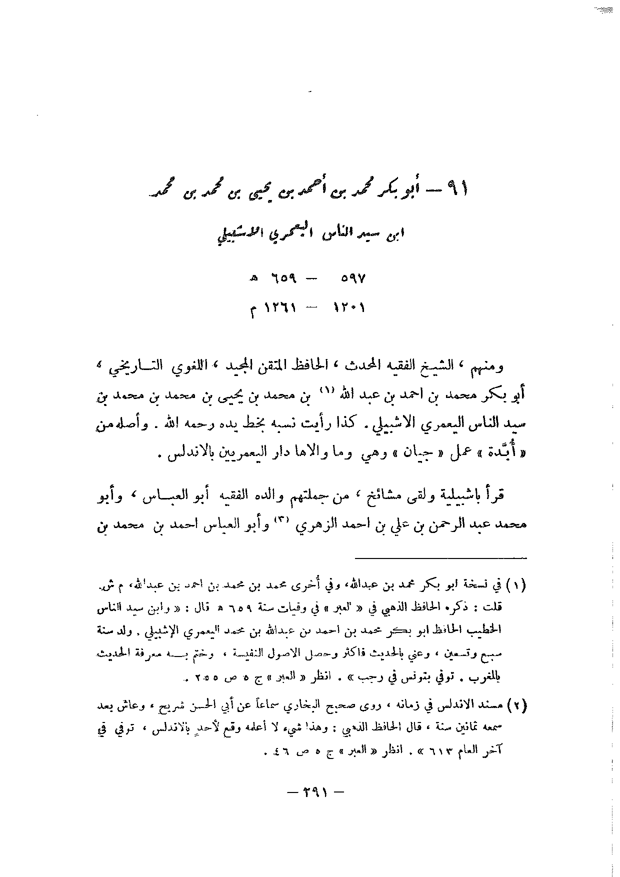 91 - أبو بكر محمد بن أحمد بن يحيى بن محمد بن محمد ابن سيد الناس اليعمري الاشبيلي