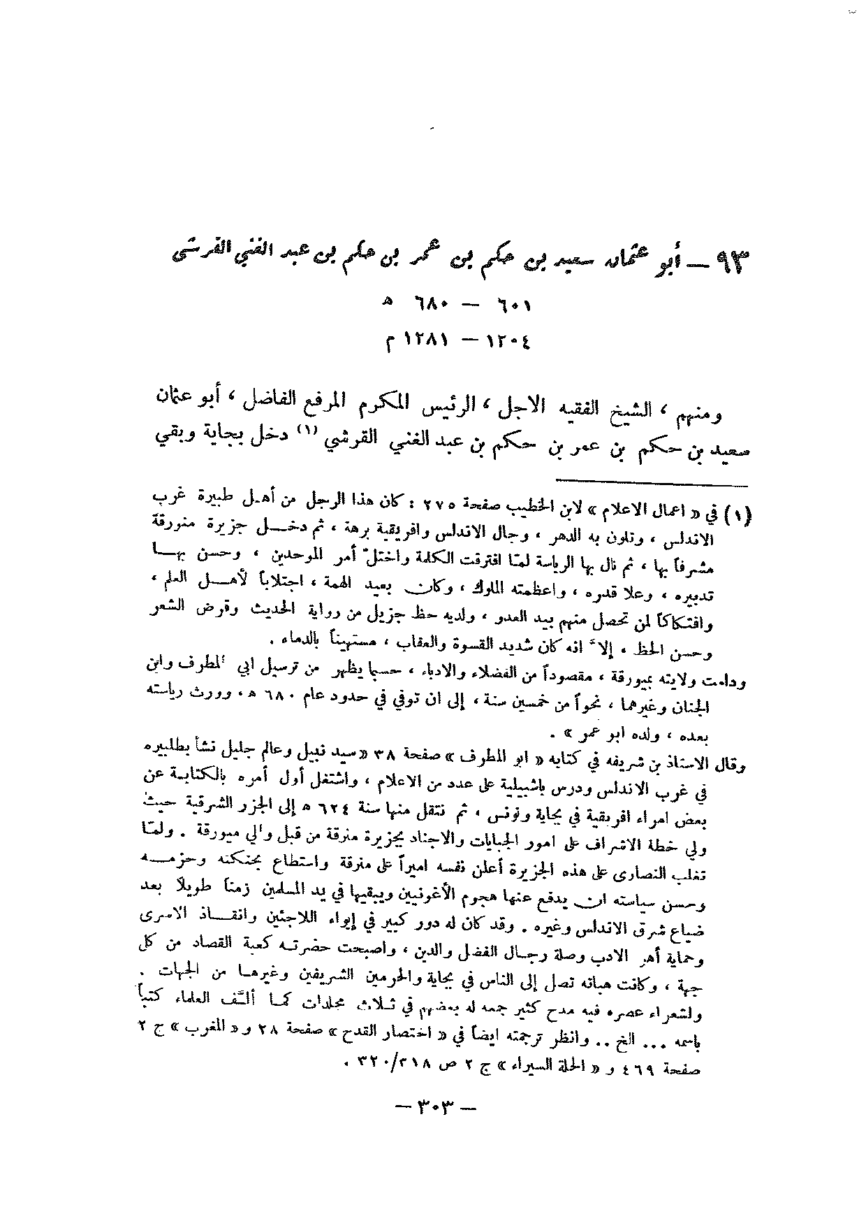 ومنهم، الشيخ الفقيه الأجل، الرئيس المكرم المرفع الفاضل، أبو عثمان سعيد بن حكم بن عمر بن حكم بن عبد الغني القرشي دخل بجاية وبقي