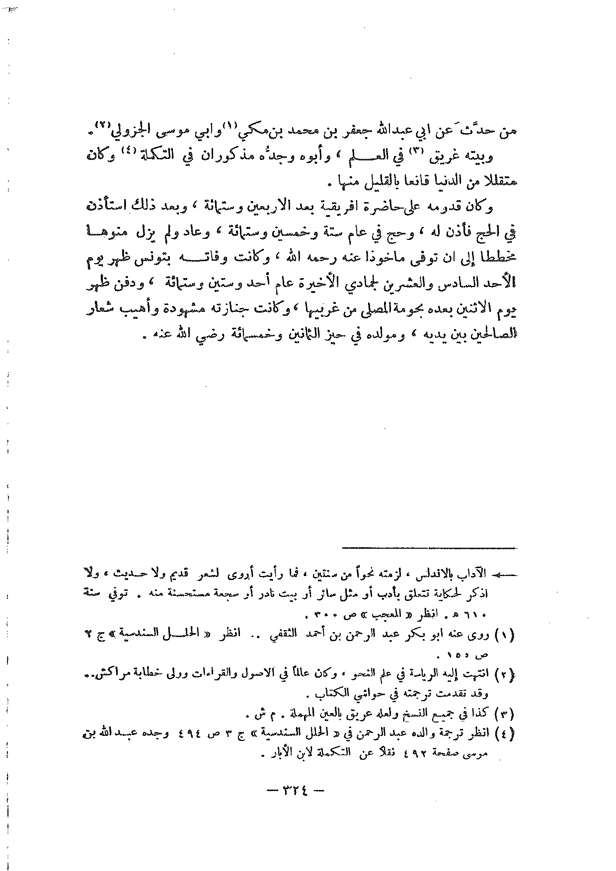 من حدث عن أبي عبد الله جعفر بن محمد بن مكي وأبي موسى الجزولي. وبيته غريق في العلم، وأبوه وجده مذكوران في التكملة وكان متقللا من الدنيا قانعا بالقليل منها.