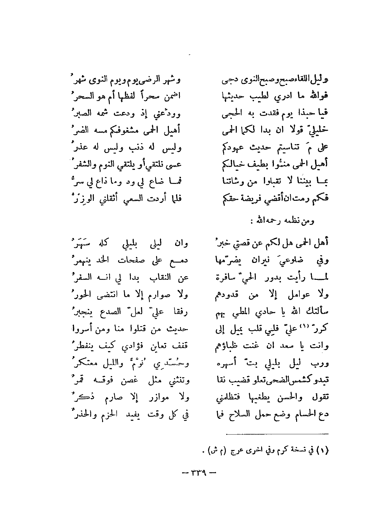 خليلي قولا أن بدا لكما الحمى … أهيل الحمى مشغوفكم مسه الضر