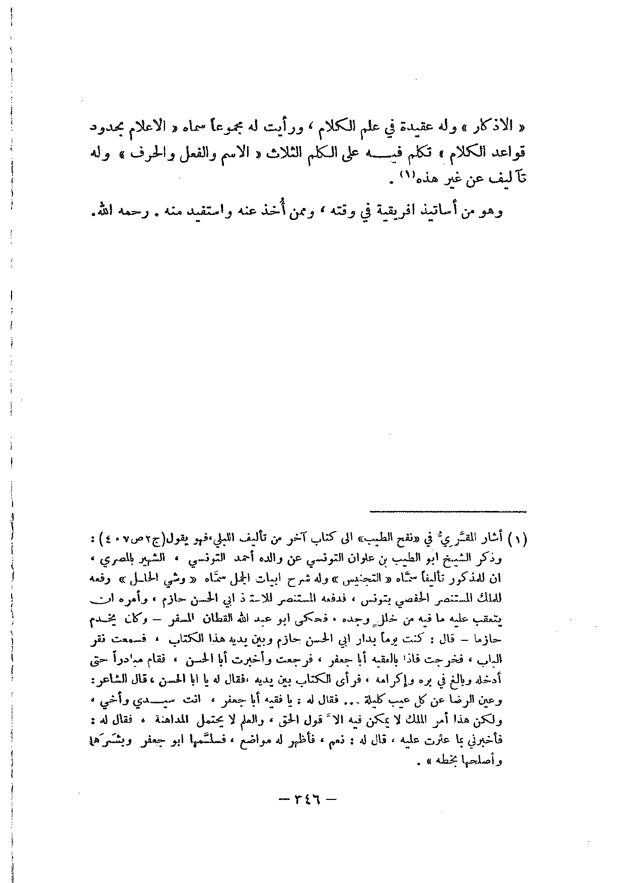 في "الأذكار" وله عقيدة في علم الكلام، ورأيت له مجموعا سماه "الإعلام بحدود قواعد الكلام" تكلم فيه على الكلم الثلاث "الاسم والفعل والحرف" وله تآليف عن غير هذه.
