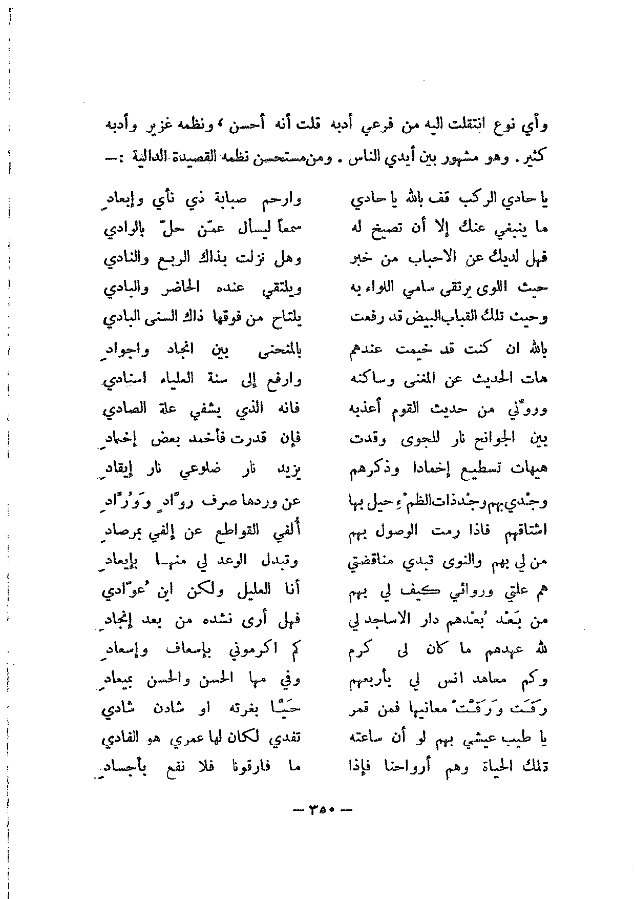 يا حادي الركب قف بالله يا حادي … وارحم صبابة ذي نأي وإبعاد