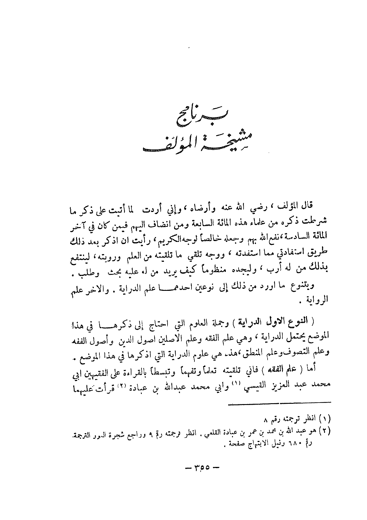 قال المؤلف، رضي الله عنه وأرضاه، وإني أردت لما أتيت على ذكر ما شرطت ذكره من علماء هذه المائة السابعة ومن انضاف إليهم فيمن كان في آخر المائة السادسة، نفع الله بهم وجعله خالصا لوجه الكريم، رأيت أن أذكر بعد ذلك طريق استفادتي مما استفدته، ووجه تلقي ما تلقيته من العلم ورويته، لينتفع بذلك من له أرب، وليجده منظوما كيف يريد من له عليه بحث وطلب.