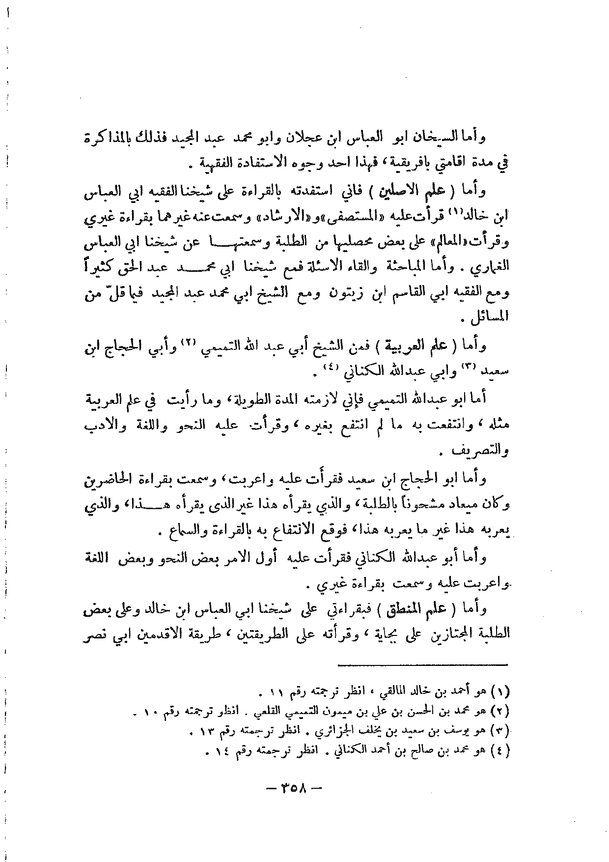 وأما الشيخان أبو العباس ابن عجلان وأبو محمد عبد المجيد فذلك بالمذاكرة في مدة إقامتي بافريقية، فهذا أحد وجوه الاستفادة الفقهية.