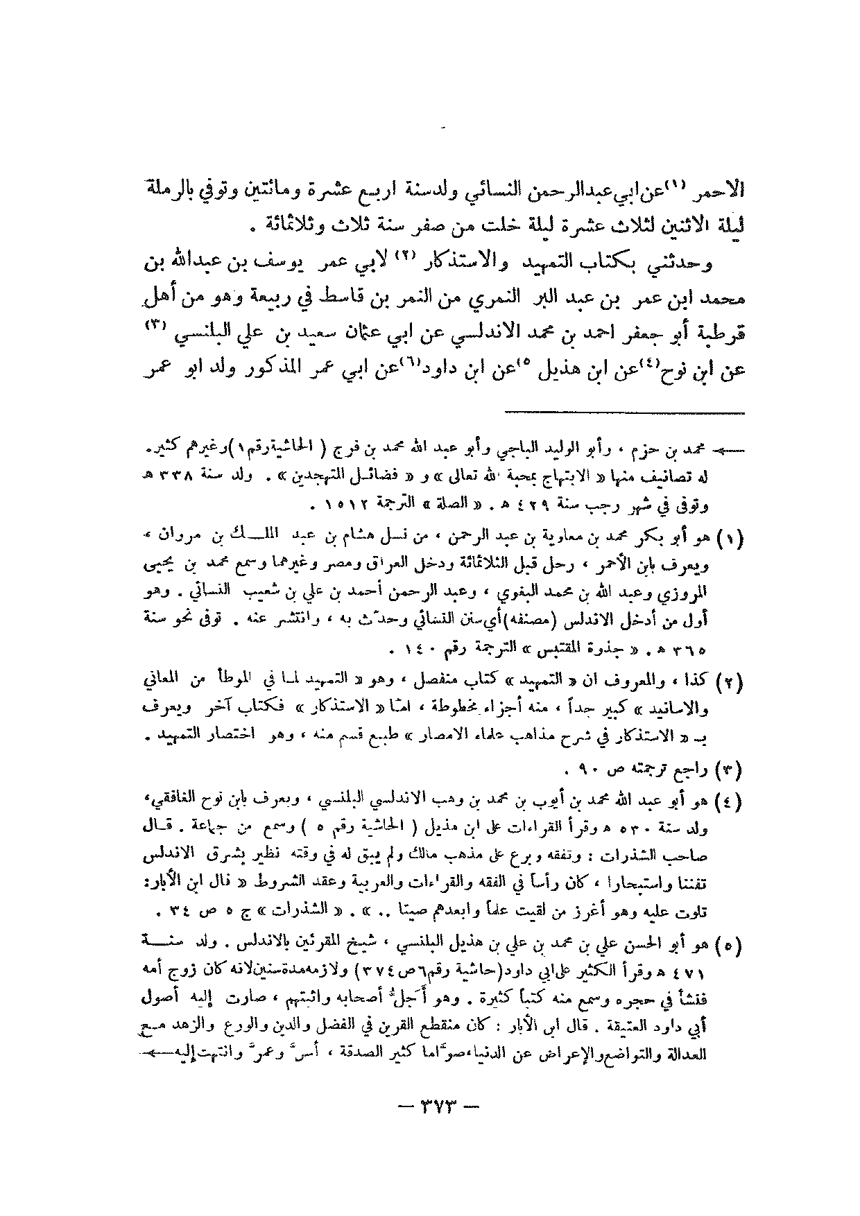 وحدثني بكتاب التمهيد والاستذكار لأبي عمر يوسف بن عبد الله بن محمد ابن عمر بن عبد البر النمري من النمر بن قاسط في ربيعة وهو من أهل قرطبة أبو جعفر أحمد بن محمد الأندلسي عن أبي عثمان سعيد بن علي البلنسي عن ابن نوح عن ابن هذيل عن ابن داود عن أبي عمر المذكور ولد أبو عمر