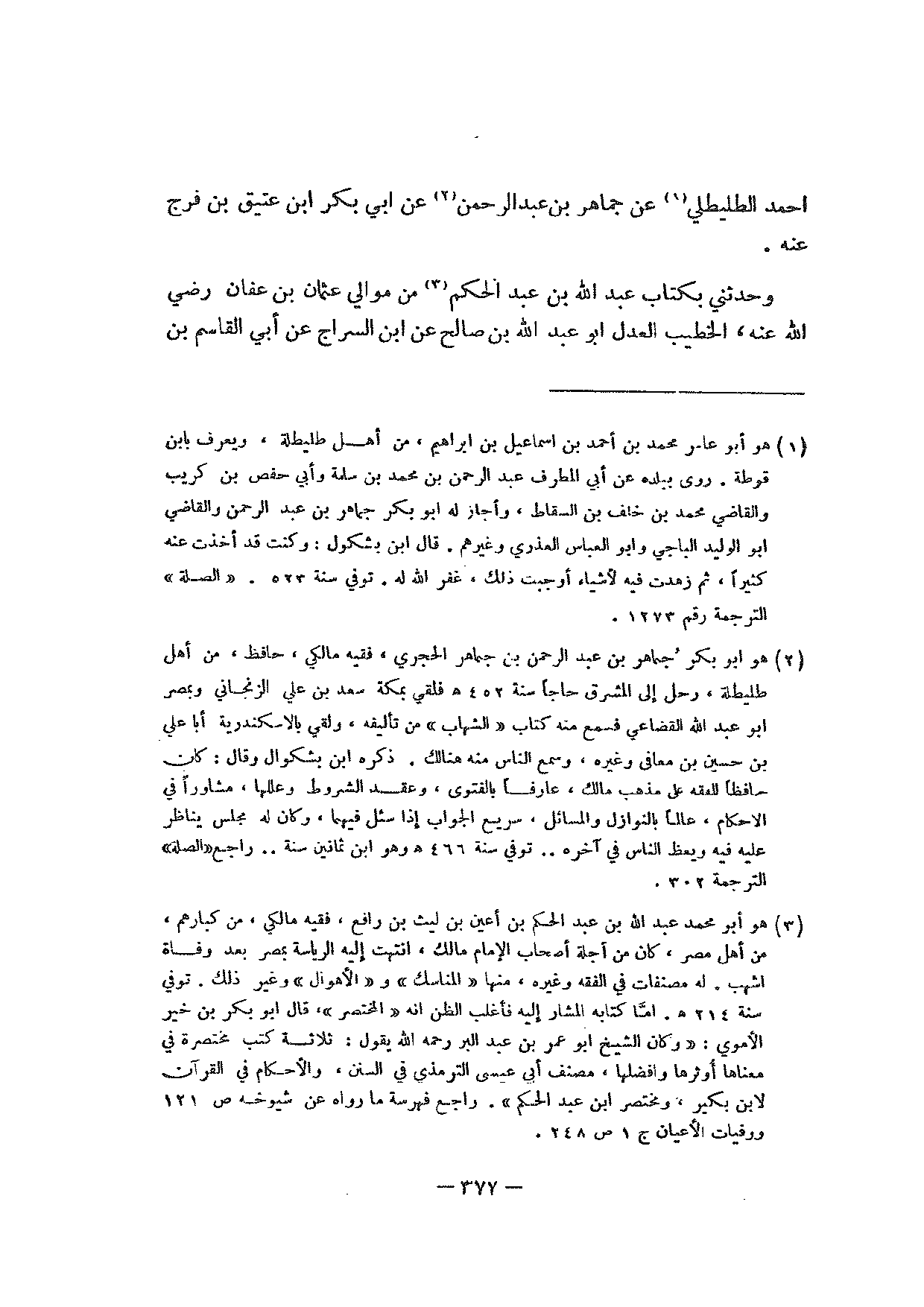 وحدثني بكتاب عبد الله بن عبد الحكم من موالي عثمان بن عفان رضي الله عنه، الخطيب العدل أبو عبد الله بن صالح عن ابن السراج عن أبي القاسم بن