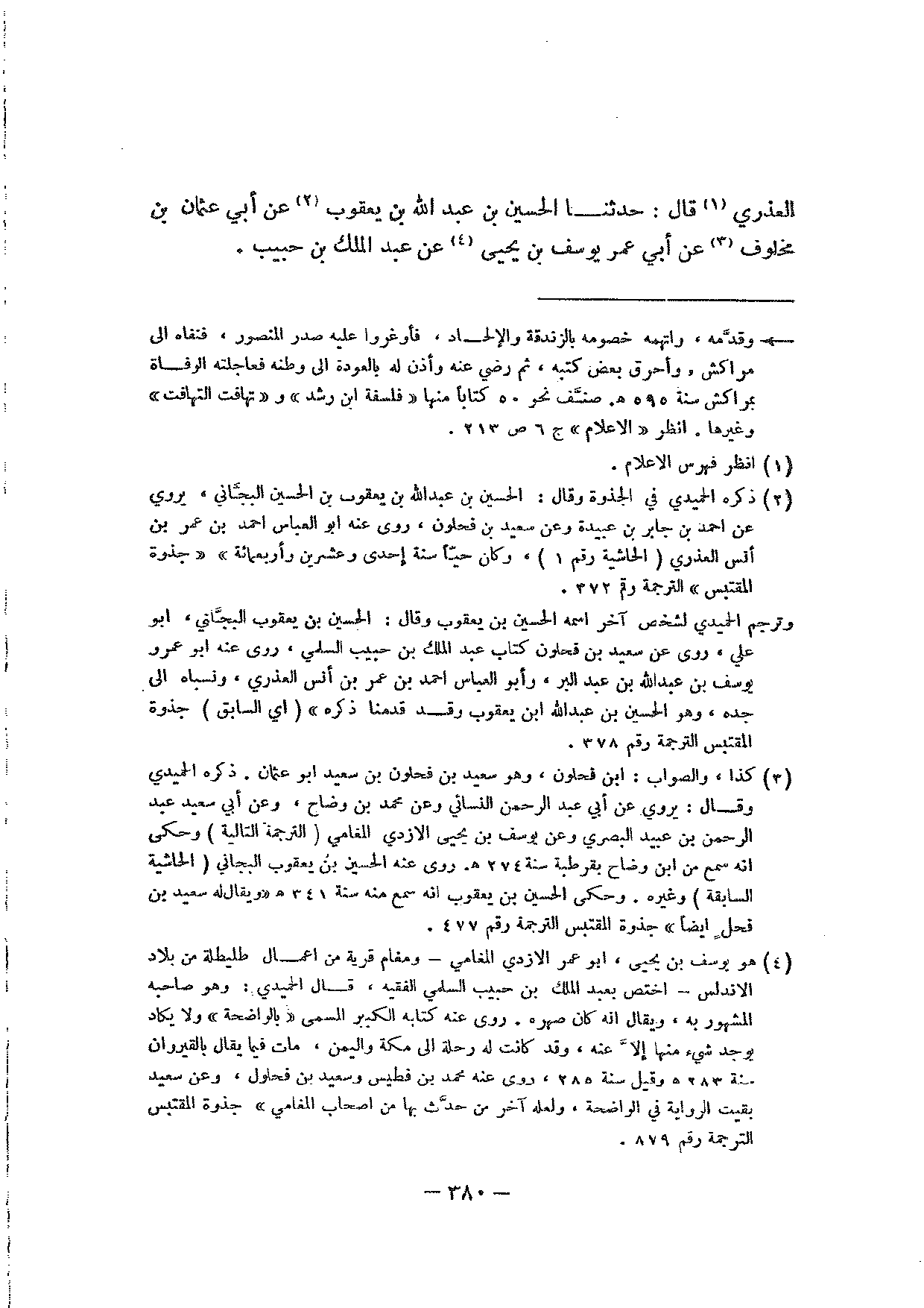 العذري قال: حدثنا الحسين بن عبد الله بن يعقوب عن أبي عثمان بن مخلوف عن أبي عمر يوسف بن يحيى عن عبد الملك بن حبيب.