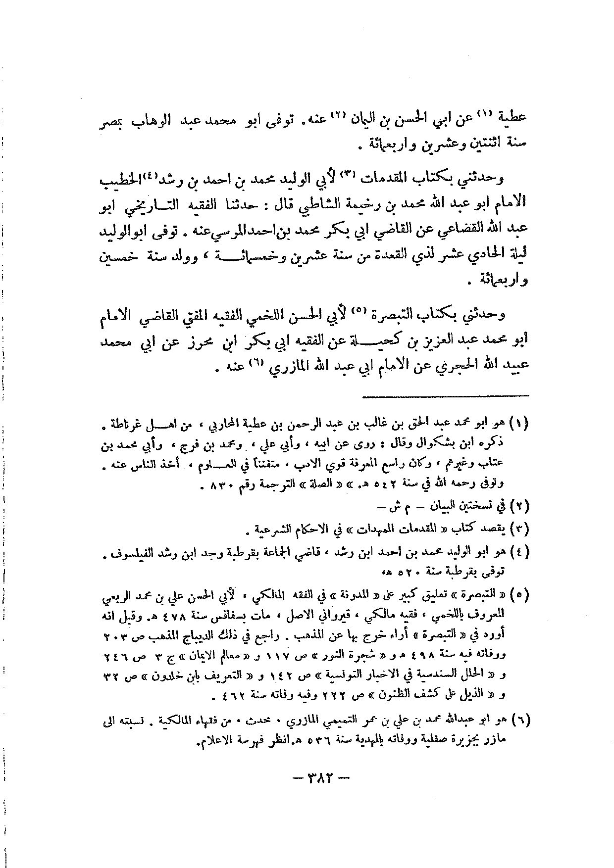 وحدثني بكتاب التبصرة لأبي الحسن اللخمي الفقيه المفتي القاضي الإمام أبو محمد عبد العزيز بن كحيلة عن الفقيه أبي بكر ابن محرز عن أبي محمد عبيد الله الحجري عن الإمام أبي عبد الله المازري عنه.