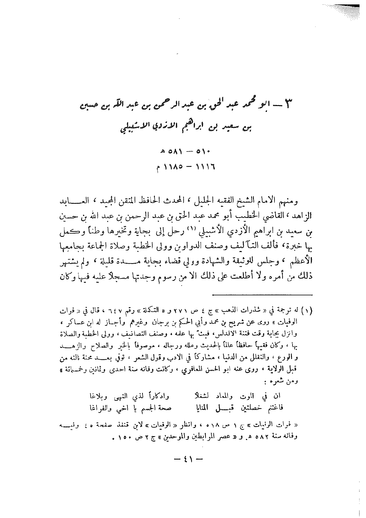3 - أبو محمد عبد الحق بن عبد الرحمن بن عبد الله بن حسين بن سعيد بن إبراهيم الازدي الاشبيلي