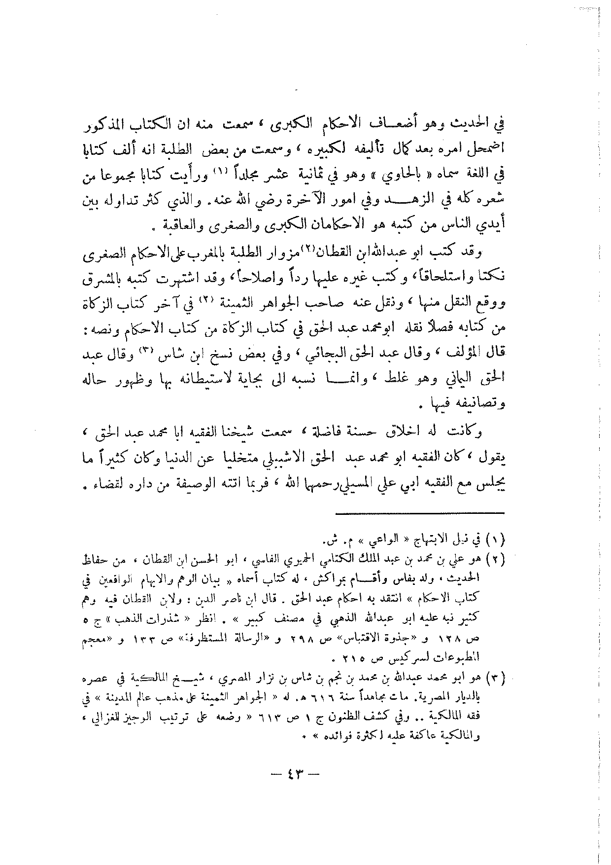 وقد كتب أبو عبد الله ابن القطان مزوار الطلبة بالمغرب على الأحكام الصغرى نكتا واستلحاقا، وكتب غيره عليها ردا وإصلاحا، وقد اشتهرت كتبه بالمشرق ووقع النقل منها، ونقل عنه صاحب الجواهر الثمينة في آخر كتاب الزكاة من كتابه فصلا نقله أبو محمد عبد الحق في كتاب الزكاة من كتاب الأحكام ونصه: قال المؤلف، وقال عبد الحق البجائي، وفي بعض نسخ ابن شاس وقال عبد الحق اليماني وهو غلط، وإنما نسبه إلى بجاية لاستيطانه بها وظهور حاله وتصانيفه فيها.