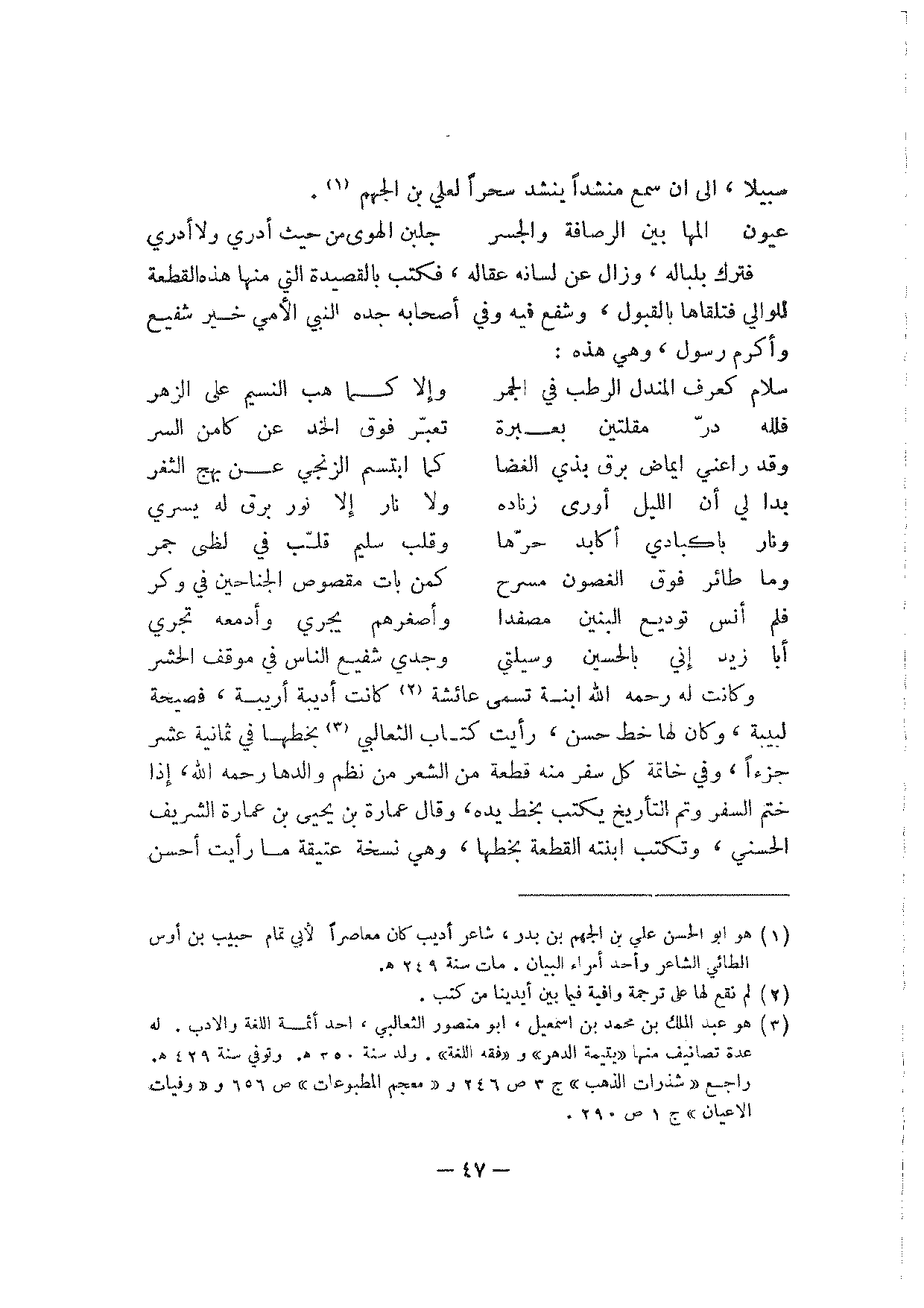 سبيلا، إلى أن سمع منشدا ينشد سحرا لعلي بن الجهم.