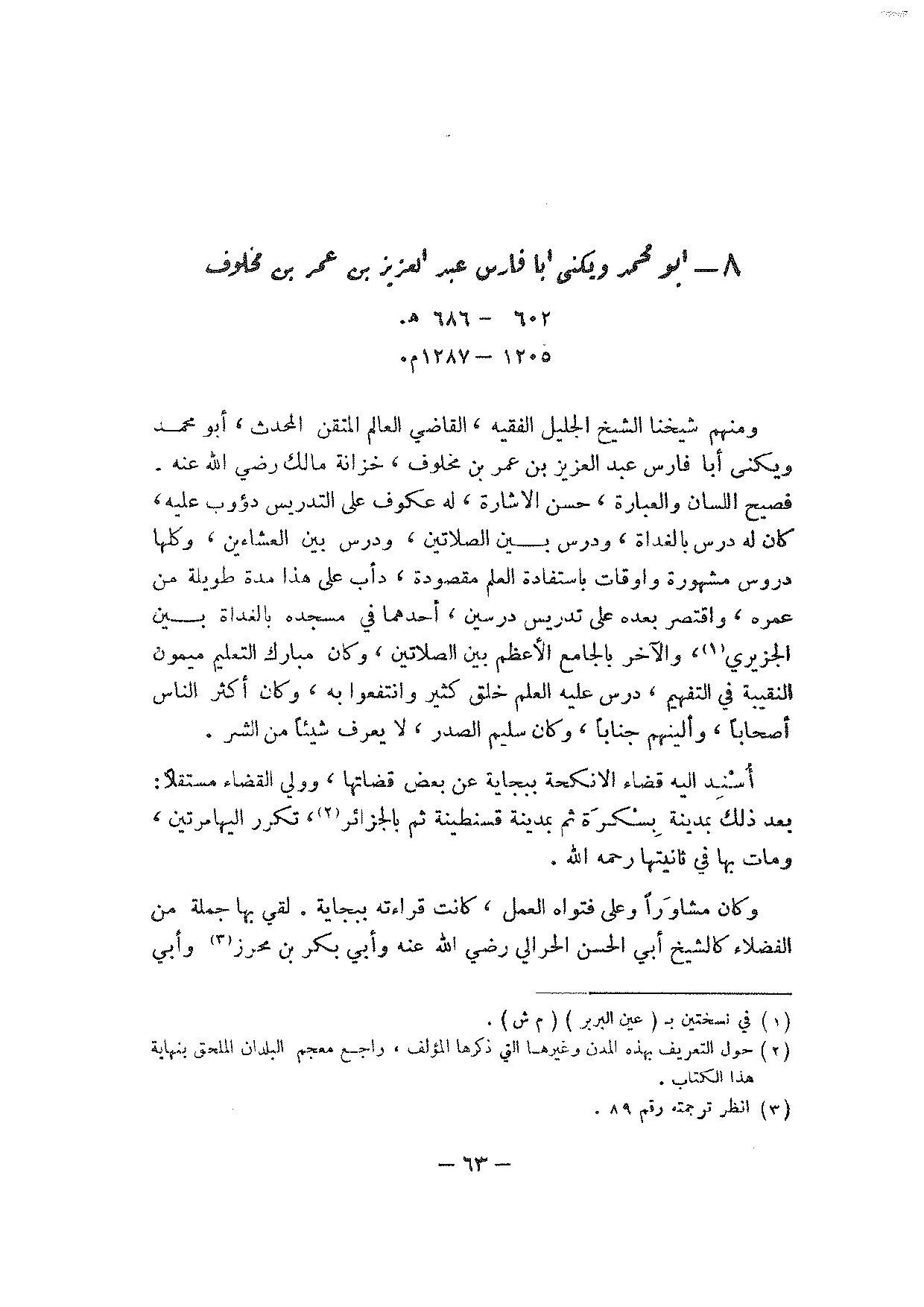 8 - أبو محمد ويكنى أبا فارس عبد العزيز بن عمر بن مخلوف