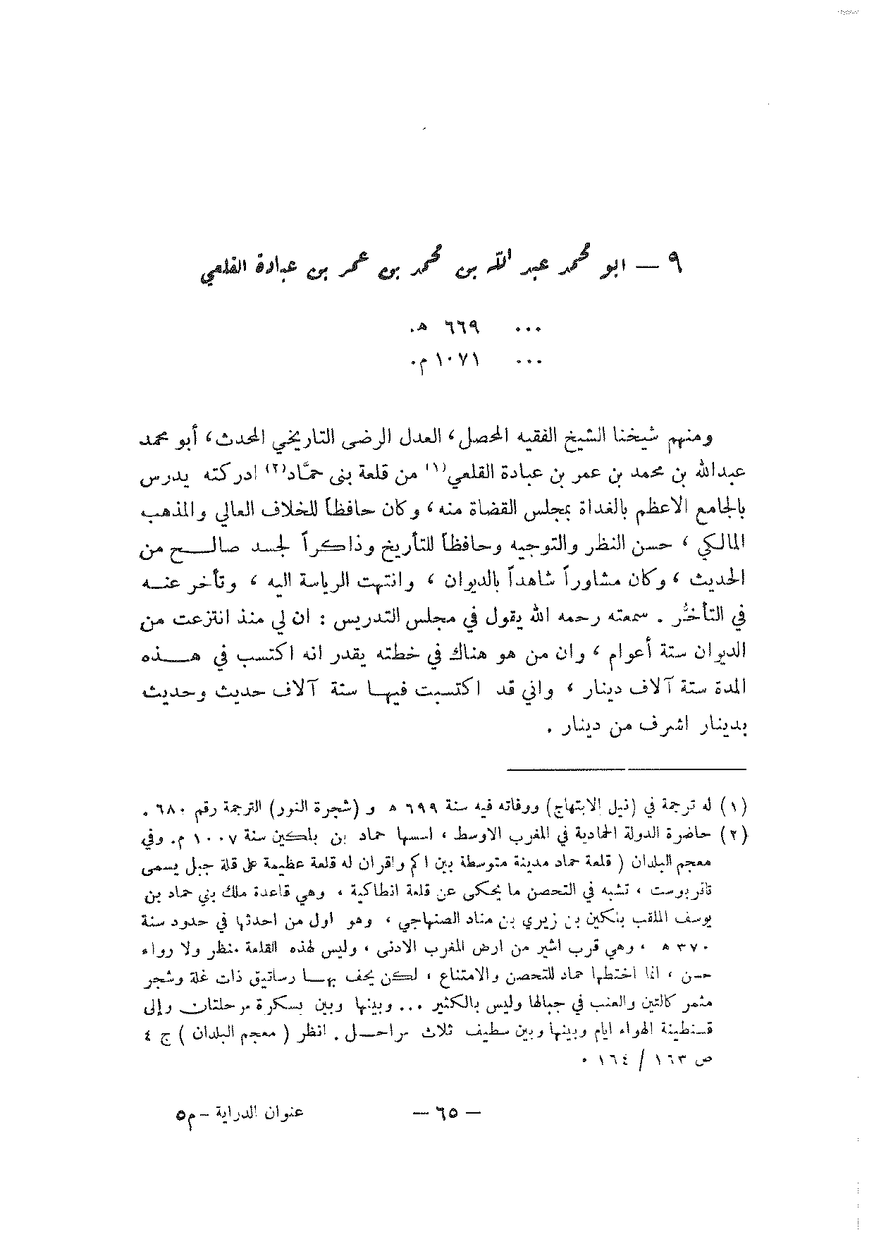 9 - أبو محمد عبد الله بن محمد بن عمر بن عبادة القلعي