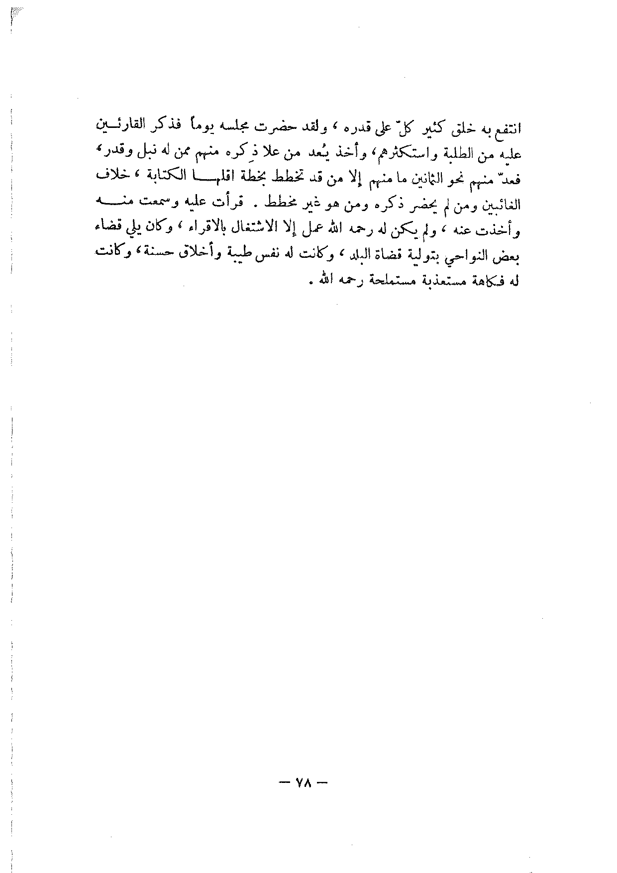 انتفع به خلق كثير كل على قدره، ولقد حضرت مجلسه يوما فذكر القارئين عليه من الطلبة واستكثرهم، وأخذ يعد من على ذكره منهم ممن له نبل وقدر، فعد منهم نحو الثمانين ما منهم إلا من قد تخطط بخطة اقلها الكتابة، خلاف الغائبين ومن لم يحضر ذكره ومن هو غير مخطط. قرأت عليه وسمعت منه وأخذت عنه، ولم يكن له رحمه الله عمل إلا الاشتغال بالإقراء، وكان يلي قضاء بعض النواحي بتولية قضاة البلد، وكانت له نفس طيبة وأخلاق حسنة، وكانت له فكاهة مستعذبة مستملحة رحمه الله.