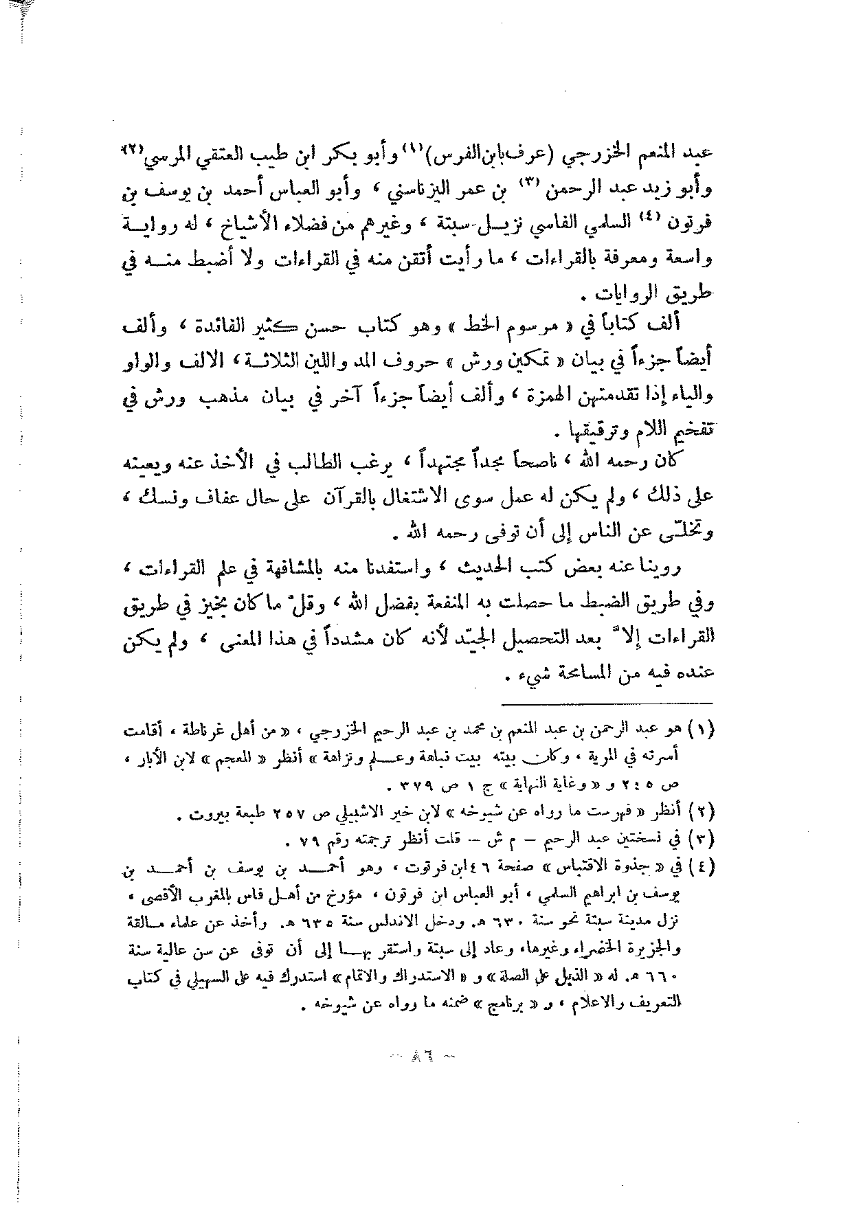 روينا عنه بعض كتب الحديث، واستفدنا منه بالمشافهة في علم القراءات، وفي طريق الضبط ما حصلت به المنفعة بفضل الله، وقل ما كان بخير في طريق القراءات إلا بعد التحصيل الجيد لأنه كان مشددا في هذا المعنى، ولم يكن عنده فيه من المسامحة شيء.