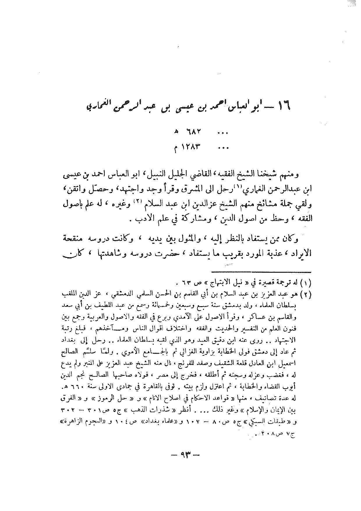 ومنهم شيخنا الشيخ الفقيه، القاضي الجليل النبيل، أبو العباس أحمد بن عيسى ابن عبد الرحمن الغماري رحل إلى المشرق وقرأ وجد واجتهد، وحصل وأتقن، ولقي جملة مشائخ منهم الشيخ عز الدين ابن عبد السلام وغيره، له علم بأصول الفقه، وحظ من أصول الدين، ومشاركة في علم الأدب.